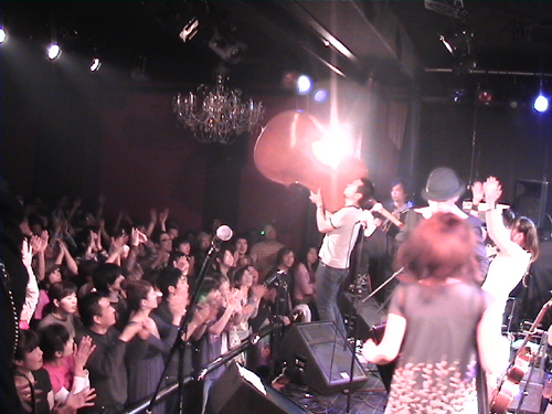 なんというかソウルフラワーのメンバーさんもそうですが、スタッフの方達もとてもなごやかな雰囲気の方達ばかりで楽しい時間を過ごさせていただきました。中川さんはCLOVERSのリハーサルもずっとみていてくれていろいろとアドバイスもしていただいたりと、ほんとありがとうございます。CLOVERSメンバーはステージは緊張した様です。そんな緊張がてでる?の本番前のステージ裏。今回は前回のファンダンゴに引き続きパピーペットにコーラスを担当してもらい「島」「朽チ果テナイ唄」「やがて散りゆく花のように」を島唄アレンジでお届け。イベント終了後はシャングリラうえのマンボカフェで打上げ、若干かけてるメンバーもいますが、ソウルフラワーの皆さんと記念撮影。ソウルフラワーの皆様またどうぞよろしくお願いします。