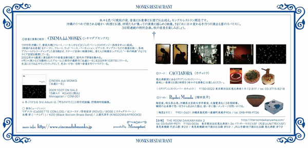 CINEMA dub MONKS 3d album「永遠と一日」発売記念〜3日間 連続公演 "モンクス・レストラン" vol.1